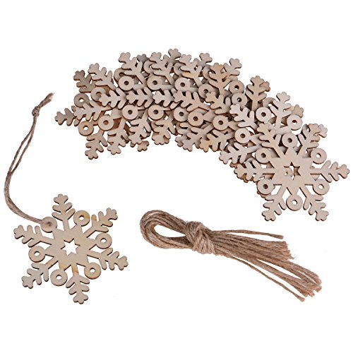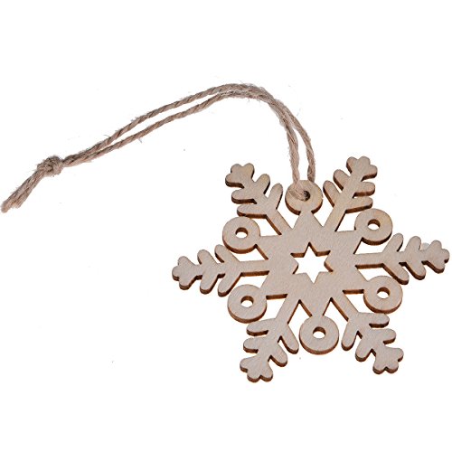 Hophen Wooden Laser Cut Hexagon Snowflake with Hemp Rope Rustic style Crafts Christmas Tree Hanging Ornament (20Pcs, Snowflake)
