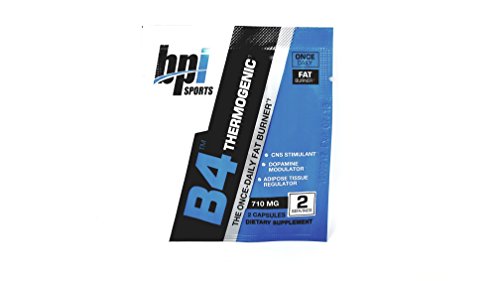-. Binding : Health and Beauty -. Brand : BPI Sports -. EAN : 0627933025506 -. Feature : Supports Weight Loss - This Once-Daily Thermogenic is an Adipose Tissue Regulator That Targets Those Areas Where It's Harder to Lose Fat. B4 is Perfect to Take As a Pre Workout, As a Midday Energy Boost or on a Non-Training Day for Continued Support of Fat Burning. / Supports Mood & Focus - B4 Contains a Central Nervous System Stimulant That Keeps You Focused and Energized. The Exclusive Combination of Cutting-Edge Ingredients Can Also Positively Affect Your Mood. / Promotes Metabolic Activity - The Thermogenic Effect of B4 Increases The Body's Energy Expenditure and Helps It Tap Into Fat Stores for Fuel. / Elevates Energy Levels - The Caffeine Anhydrous in B4 is Considered a Purer Form of Caffeine and Much More Effective and Potent. It Provides You with a Long-Lasting, Extreme Energy Boost, as Well as Enhanced Focus and Alertness. / 90 capsules (45 x 2ct packs = 90 capsules) 3 Months Total -. IsAdultProduct : 0 -. Label : BPI Sports -. Manufacturer : BPI Sports -. MPN : b4 -. PackageQuantity : 120 -. PartNumber : b4 -. ProductGroup : Health and Beauty -. ProductTypeName : HEALTH_PERSONAL_CARE -. Publisher : BPI Sports -. Studio : BPI Sports -. Title : BPI Sports B4 (Once Daily Fat Burner) 710mg; 90 capsules (45 X 2ct packs) 3 Months Supply -. UPC : 627933025506