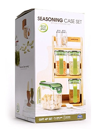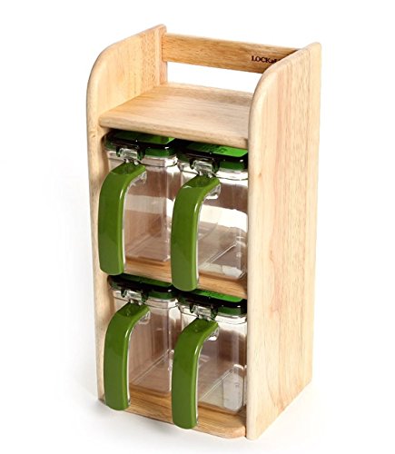 Lock & and Lock Seasoning Condiment Spice Food Storage Containers Wood Case 4p Set