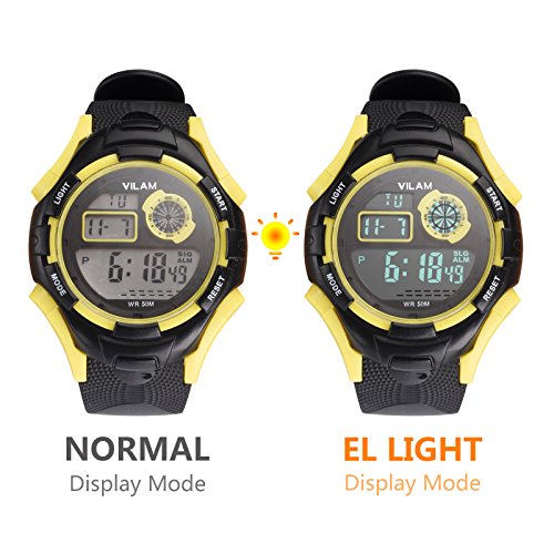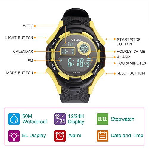 ★Multi-functional Kid Watch: Please tear off the protective film on the screen before use. Digits LCD Display, Display Hour, Minute, Second, Week, Stopwatch, Shock Resistant, Hourly Chime and Daily Alarm, 12H/24H format is changeable, Chronograph with split function, EL back light. Nice kid watch suitable for both boys and girls.
