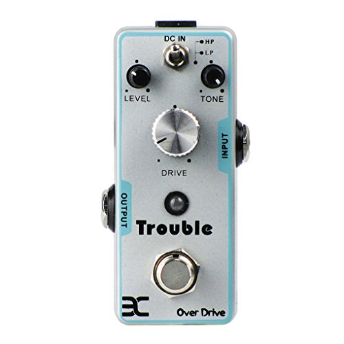 Studio : EX-AMP Publisher : EX-AMP Product Description Feature:* Ultra wide dynamic range and extraordinary open tube-like drive sound.* 2 Working Modes: High Peak / Low Peak* With 3 functional knobs, Level knob/ Tone knob/ Drive knob, to control the performance of the distortion sound.* LED indicator instructs effects or bypass status of trouble overdrive effect, when the led is lit up, the effects is on.* Small and exquisite design with full metal shell.* True bypass style, with durable jacks and foot switch.* Can be used Negative DC 9V as Power Supply.Specification:Trouble Over Drive Effects PedalEffects Modes: 2 (HP/LP)Input: 1/4" mono jack (impedance: 470k Ohms)Output: 1/4" mono jack (impedance: 1k Ohms)Power Requirements: AC adapter 9V DC (center minus plugCurrent Draw: 6 mADimensions: 93.5mm x 42mm x 52mmAccessories: Owner's ManualPlease Read Manual Before Operating.Package Includes:1 x OverDrive Effect Pedal1 x Manual1 x Bag 0