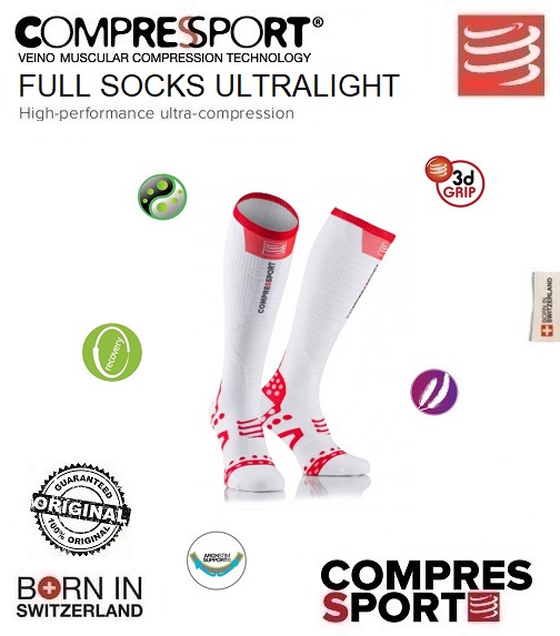In a single pair of full ultra-light socks, COMPRESSPORT®concentrates the technologies mastered in both the Pro Racing Socks Ultra-light and the Full Socks to give a foot gear that suits long distance racers: trail runners, triathletes, cyclists.
