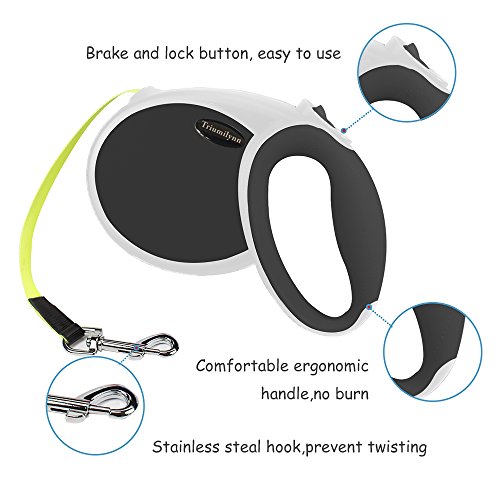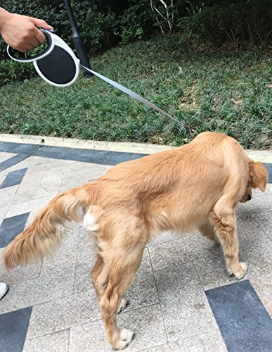 So, a sturdy dog leash seems to be a must. The enhanced nylon ribbon of this retractable dog leash is capable of bearing strong tension from your dog's sudden quick pulling, which maximizes his/her safety and your control.