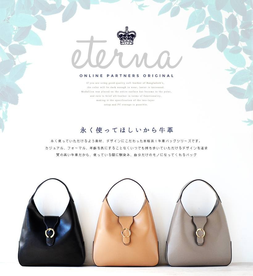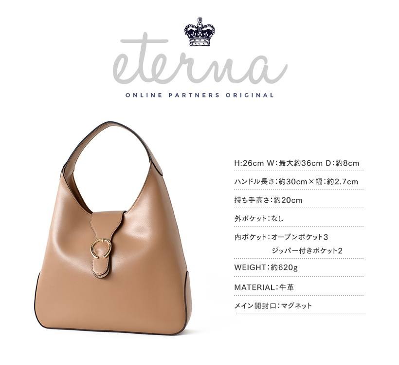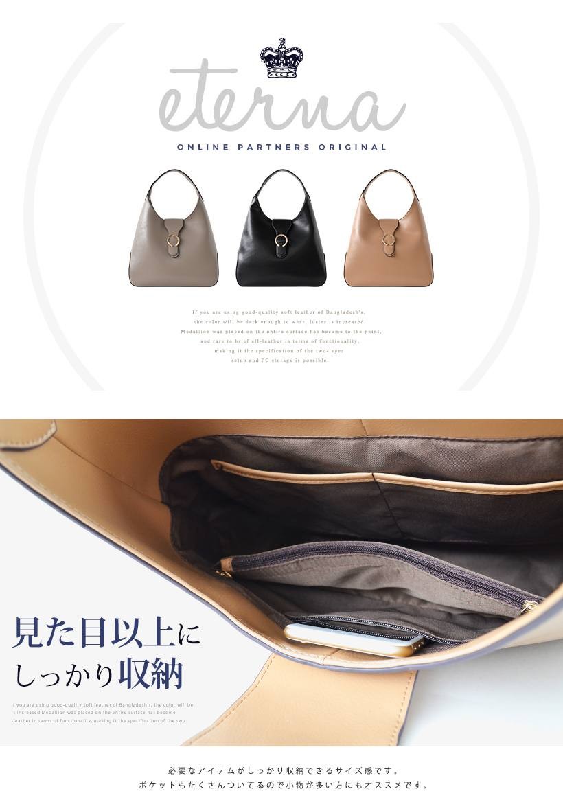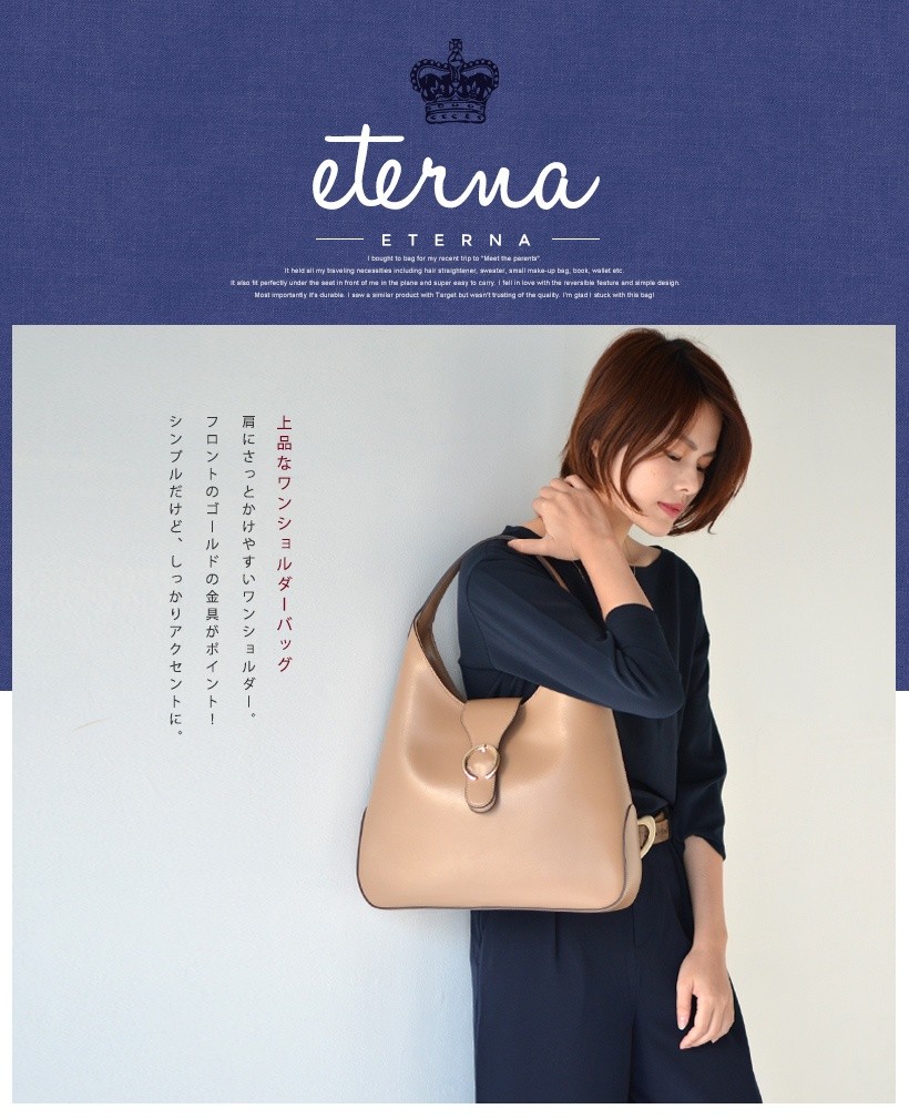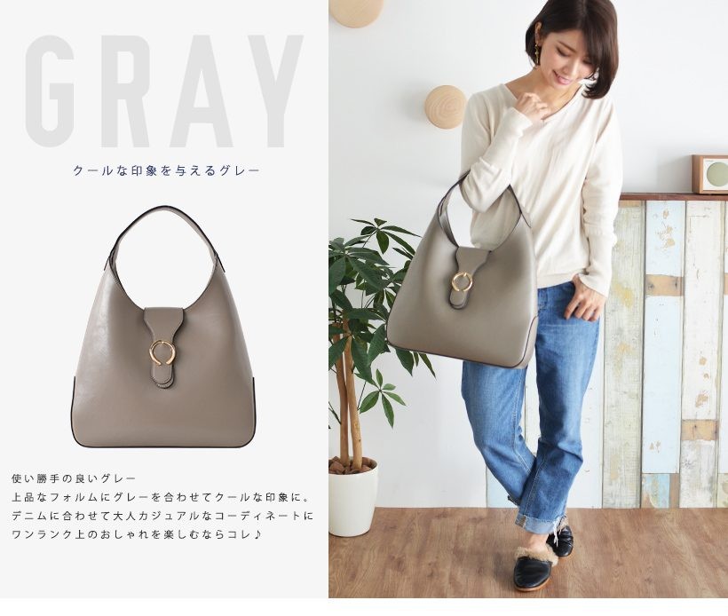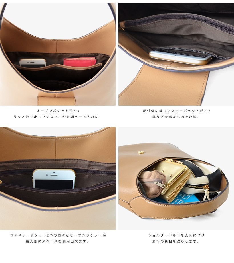 上品なワンショルダーバッグ肩にさっとかけやすいワンショルダー。フロントのゴールドの金具がポイント!シンプルだけど、しっかりアクセントに。●SIZE:幅最大:約36cm / 高さ:約26cm / マチ:約8cm●ハンドル長さ:約30cm×幅:約2.7cm、持ち手高さ:約20cm●外ポケット:なし●内ポケット:オープンポケット3、ジッパー付きポケット2●重さ:約620g●素材:牛革●バッグのメイン開閉口はマグネットになっております。