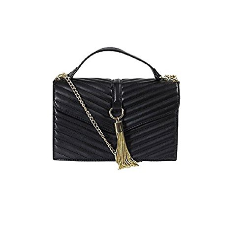Womens Yvvon Faux Leather Tassel Crossbody Handbag Black