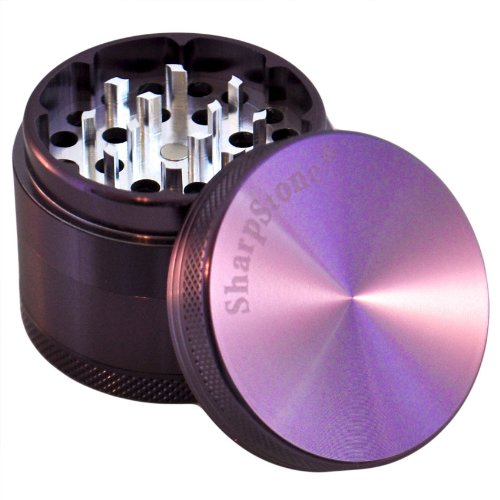 2.2" - Purple 4 Piece SharpStone Aluminum Herb Grinder + Custom Pollen Pick Bundle