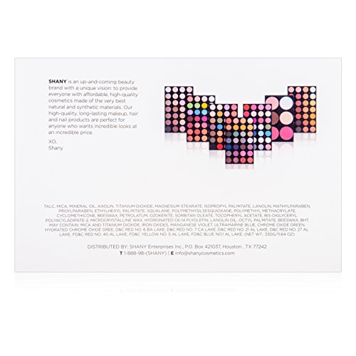 - Feature : Durable and space effective magnetic box with built-in shelving / One layer of matte blush and contour powders for all skin tones / Six layers of high pigmented eye shadow with matte/pearl/ shimmer finishes / Total of 168 different eye shadow shades for all occasions year-round use and fun / SHANY is a member of PETA and all of our products are cruelty-free - designed by makeup professionals in the U.S.A