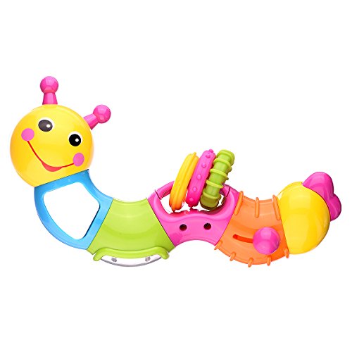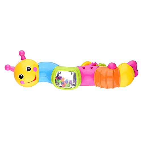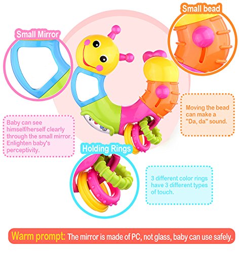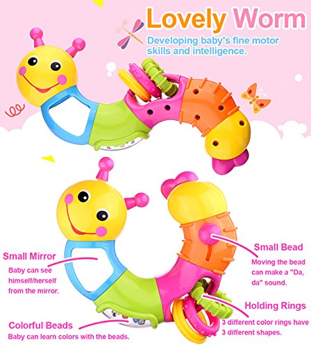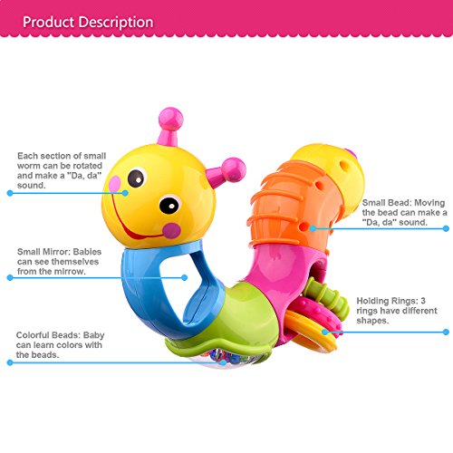 Coolecool Lovely Worm Rattle Toys Baby Toys 6 to 12 Months with Rotary Head, Holding Rings, Colorful Beads, Small Mirror and Twisting Game (Multicolored)