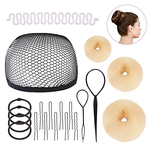Frcolor Hair Bun Maker Doughnut Donut Bun Maker Set Hair Styling Accessories Kit, Beige