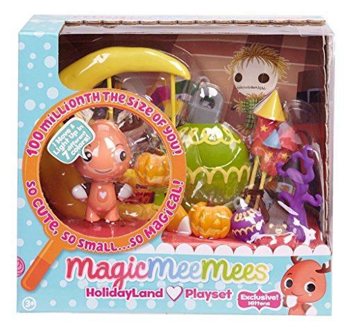 Season 1 of MagicMeeMeesTM is here! Go into the tiny worlds of MagicMeeMees, they are 100th millionth the size of you! They live inside your fruit bowl, candy jar, refrigerator and so many more places! There are 8 Playsets to collect. All come with an exclusive MagicMeeMee character. Discover the "Secret Place" in each playset and see how what MeeMotionsTM your MagicMeeMeesTM show you! Holidayland - Take a look at the life inside your attic. See the whimsical world the MagicMeeMees from Holidayland live in.Feature