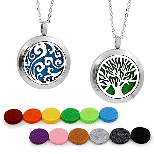 SAVE YOUR MONEY→2PCS UPGRATED MINI NECKLACES!The most affordable set!!Superior quality at good price! Two styles pendant locket, alternate use. 12 different color refill pads. THE DIAMETER OF THE FELT PAD IS 17MM, please make sure you choose the correct one when you need replacement pads.