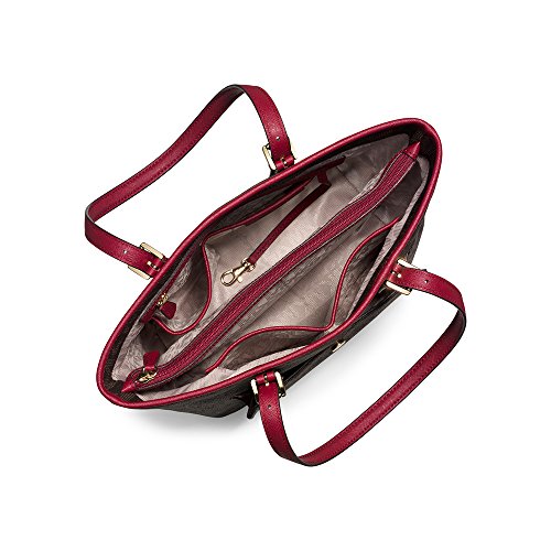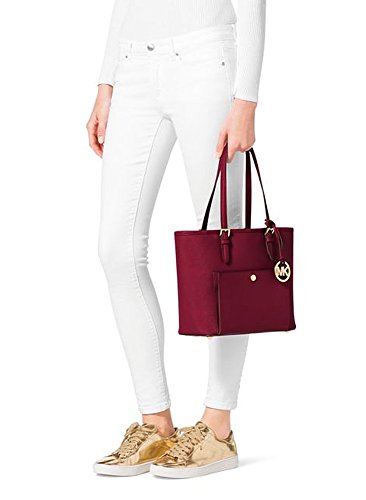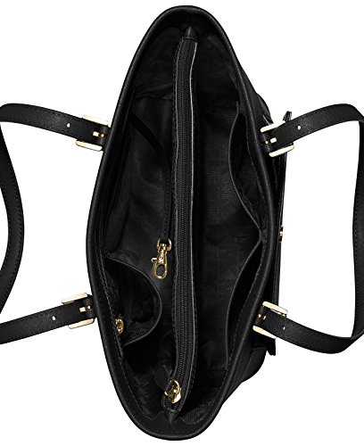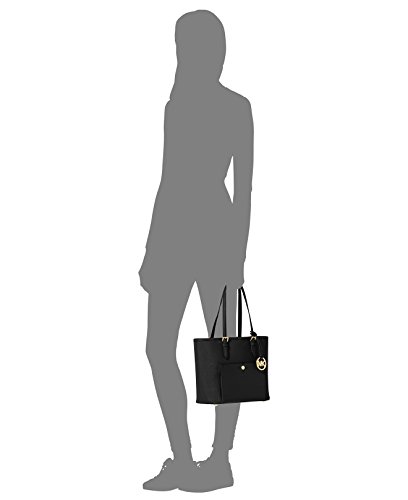 -. Brand : -. Color : black -. Department : womens -. Feature : Gold-tone hardware; self-color stitch trim / Shoulder straps with 9-in. drop / Exterior: 1 front snap pocket / Interior: 2 front slip pockets, 1 center zip pocket, 1 back slip pocket, 1 back zip pocket, 1 key clip / 13-in. W x 10-in. H x 5-in. D -. ProductGroup : Shoes -. ProductTypeName : HANDBAG -. Size : Medium -. Title : MICHAEL Jet Set Item Medium Snap Pocket Tote