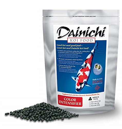 COLOR INTENSIFIER is our most potent color enhancing koi formula. It is heavily concentrated with pure cultured spirulina and Antarctic krill. Our exclusive encapsulation process provides color enhancement not possible with the conventional production methods. The result of this unique feature is that the color enhancers and other nutritive ingredients are in their raw, un-cooked state making them unequally potent. As an added benefit, this two-step application of vitamins and minerals, especially vitamins C and E, ensure that the luster, sheen and whites of your koi are always at their best. As in all other Dainichi koi foods, COLOR INTENSIFIER contains calcium montmorillonite clay to simulate the natural ingestion of mineral particles and to bind and neutralize metabolic toxins. Raw, fully potent vitamins, digestive enzymes and garlic ensure that the koi are healthy and protected from internal parasites. Furthermore, the scouring action of the clay enhances a continued rejuvenation of the digestive tract, which in turn ensures a maximum rate of digestion and assimilation of nutrients. With only two sources of starch (flour as binder and wheat germ as a source of vitamins E and B), COLOR INTENSIFIER keeps the body conformation of all koi in a constant show ready condition. As an additional benefit, the low waste production by koi, helps keeps the dissolved organics levels low in your pond, making it an invaluable aid in eliminating algal blooms.Feature