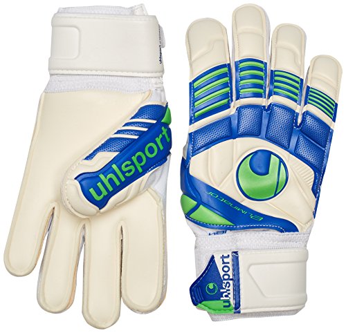 Studio : Uhlsport Publisher : Uhlsport Binding : Misc. Product Description PALM: High-grip SOFT latex.BACKHAND: Latex.CUT: Normal.GLOVE BODY: Breathable fabric for maximum comfort.FASTENING: Wrap-around EVA strap and full bandage for good fixation.- BED OF THE HAND: Ergonomically shaped latex layer on the inside with anti-slip properties to stabilise the finger and provide added impact absorption.- Eye-catching Eliminator design. 0