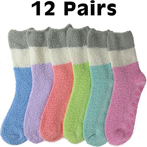 -. Binding : Apparel -. Brand : DEBRA WEITZNER -. Department : womens -. Feature : 12 pairs assorted colors as displayed. / Womens non-slip fuzzy socks are made of soft and stretchy material. Add extra warmth and comfort to your feet with these fuzzy winter socks. / size 9-11. Fits women's shoe size 4-9 / measures approximately 7 inches from heel to top. Crew style provides extra coverage. Hits around mid-calf / Comfort lounging socks. Features a non slip grip on bootom. Warm and ultra soft suitable for cold winter months. -. Model : sck-fzzy-grp-wmns-12pk-parent -. PackageQuantity : 12 -. ProductGroup : Apparel -. ProductTypeName : SOCKSHOSIERY -. Title : DEBRA WEITZNER Womens Bright Fuzzy Socks Non-skid Grip Ultra Soft 12 Pairs