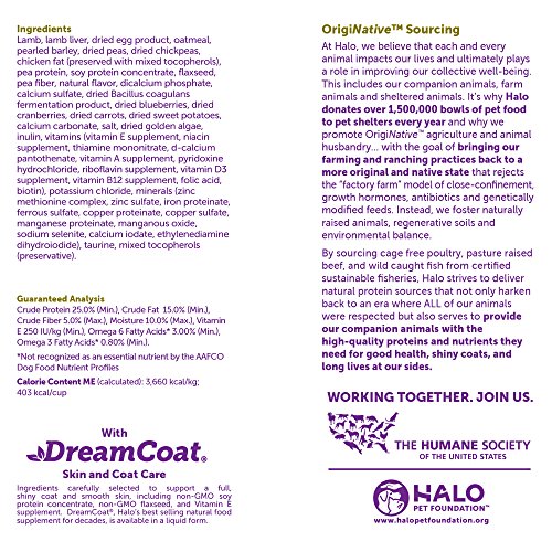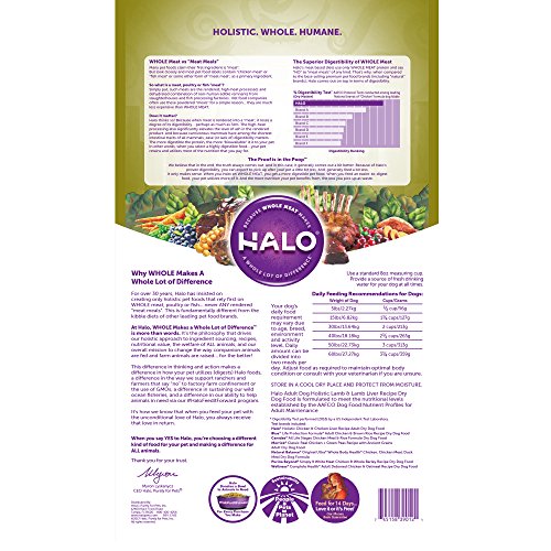 -. Title : Halo Holistic Dry Dog Food, Lamb and Lamb Liver Recipe, 25 LB Bag of Natural Dog Food