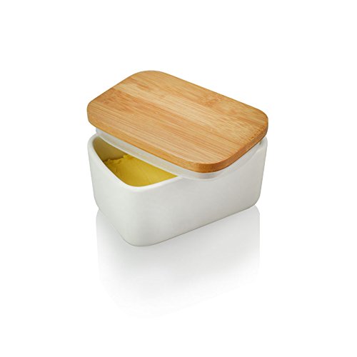 Studio : HomeLives Publisher : HomeLives Product Description Elegant Design Butter Dish Perfect butter dish to keep your butter fresh and decorate your dinner table or party, also a good gift for family member or friends; Ceramic Baking Dish Heat resistant up to 900 degrees make it a good baking dish, very good for baking small cake, potato gratin or other desserts your like; High Quality Ceramic Durable and non-stick, safe to use in microwave, oven, broiler, refrigerator and freezer, dishwasher safe for easy cleanup; Bamboo Top Lid The top lid helps your butter sticks and fresh in the refrigerator without mixing other food taste, and the bamboo lid also can be a small cutting board; Suitable for Most Butter Brands The Butter container have 300ml or 500ml for option, large enough to keep butter, and suitable for most brands' butter;