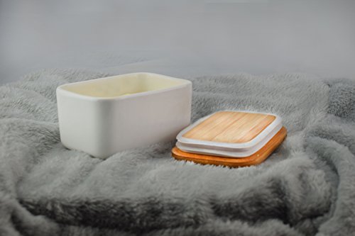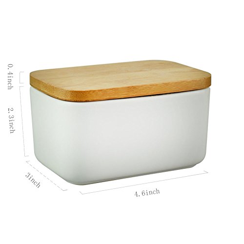 Specifications: Material: Ceramic butter container bamboo lid Size: 4.5*3*2.7in(300ml), 5.1*3.7*3.1in(500ml) Please note that when placed in the oven and microwave, please take off the o-ring seal 0