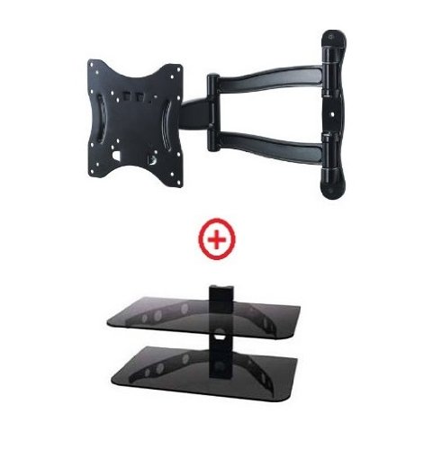 - Feature : TV wall mount fits VESA 100x100, 200x100, 200x200 Up To 30Lbs / 180 Degrees Swivel, 14 Inch Extension and 20 Degrees Of Tilt Up Or Down / Single Stud Installation, Powder Coat Paint / 2 glass shelf is designed to fit under your display and provide an on wall solution for other components such as cable boxes, DVD players, game consoles, and stereo components / 2 glass shelf size is 16" x 12"