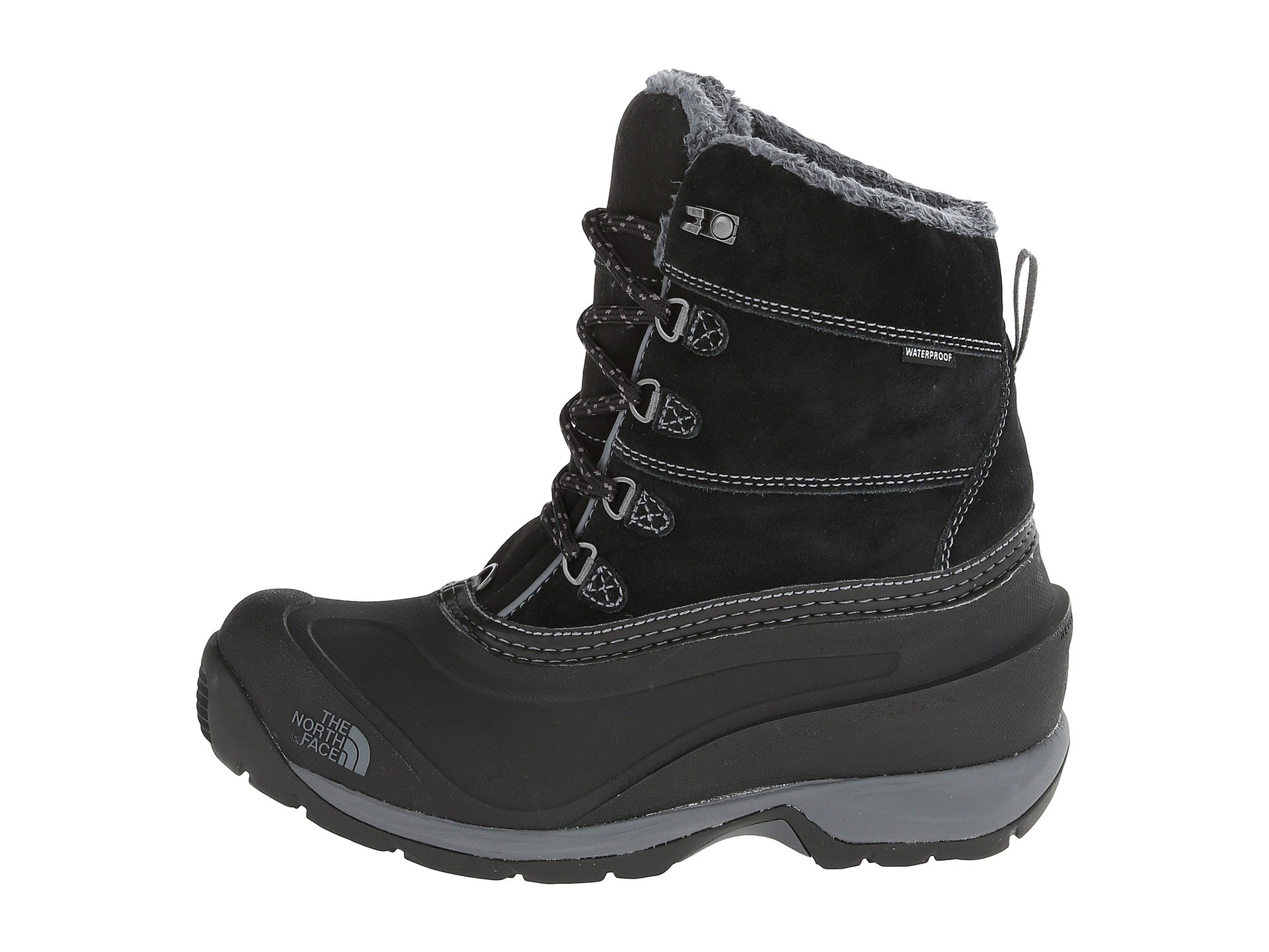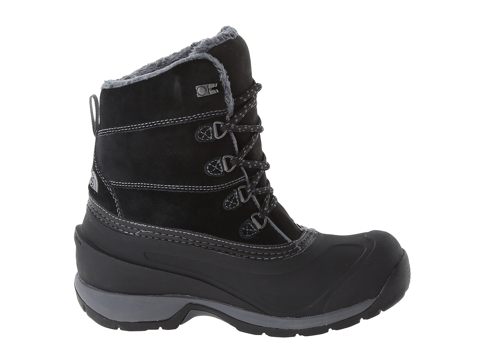 | Product Information SKU: #8360124Please note that this style is either discontinued and/or from a previous season.The sub-zero temperatures and harsh elements are no match when you have the Chilkat III boots from The North Face? underfoot!Protect your feet from the blustering winds of the winter season with The North Face? Chilkat Nylon boots!Waterproof, BLC-complaint suede and PU-coated leather upper.Waterproof construction for the ultimate weather protection. Lace-up closure with Gaiter-compatible D-ring eyelets for durability. Rustproof hardware. 200g of Heatseeker™ insulation. Fleece collar and tongue lining. Compression-molded EVA midsole. Anatomically engineered, injection-molded, waterproof TPR sheel with forefoot grooves. Durable TNF™ Winter Grip? rubber outsole with IcePick? temperature-sensitive outsole lugs for increased traction. Imported. Product measurements were taken using size 8, width B - Medium. Please note that measurements may vary by size.Measurements: Heel Height: 1 1?4 in Weight: 1 lb 7 oz Shaft: 7 3?4 in Platform Height: 3?4 in |