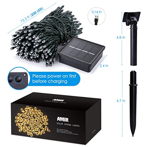 AMIR Solar Powered String Light 200 LED 8 Modes, 72 Feet Solar LED String Light, Solar Fairy Starry String Lights, Waterproof Solar Decoration Lights for Outdoor, Gardens, Party (Warm White)