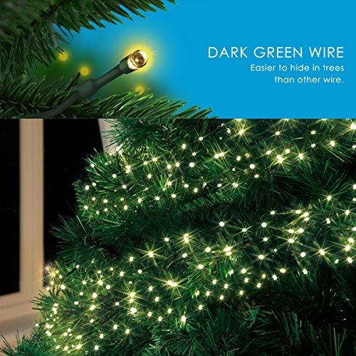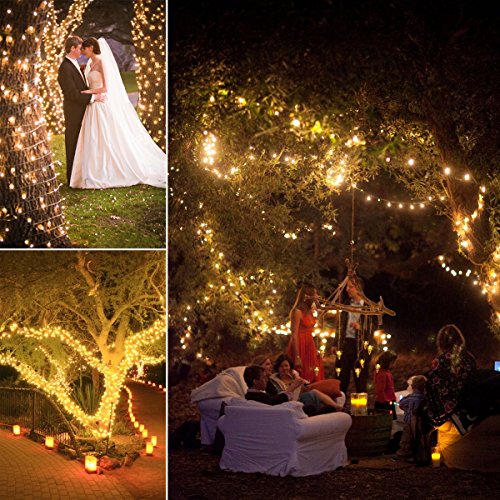 - 200 Super Bright LED - 200 LED bulbs on 72.2ft high quality lead cable, produce a cozy, warm white color. Ideal for decorating your gardens, patio, lawn, porch, gate, yard, Christmas lights, wedding, party etc.