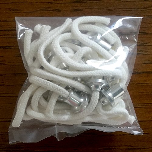 These Wicks are Small Measuring .14 inches in width. Pack of Ten Aluminum Wick Holders threaded with 6-Inch Cotton Wicks