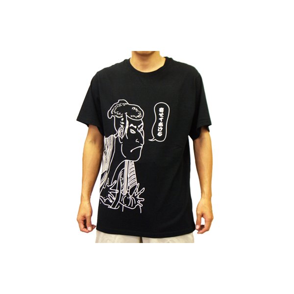 ブラックTシャツにユーモアたっぷりのパロディTシャツです。コレを着ればあなたはこの夏、視線を独り占めの主役になること間違いなし!!!