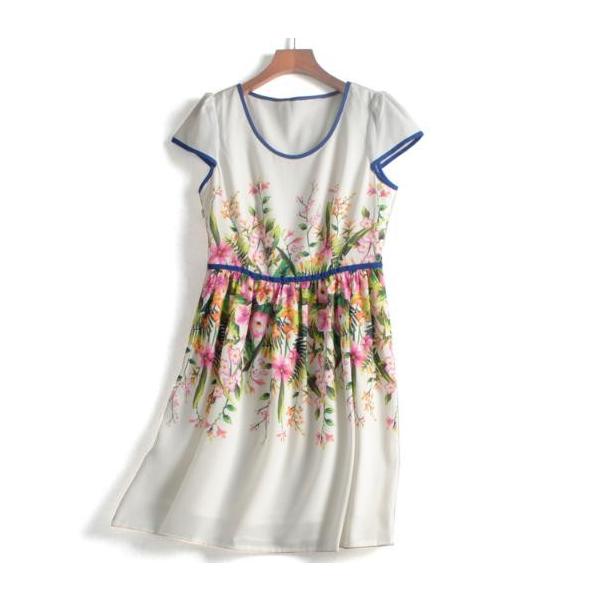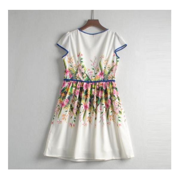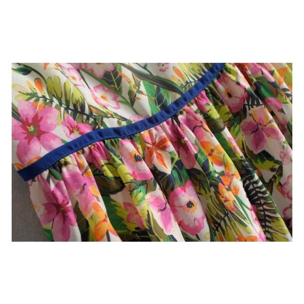 大胆で鮮やかなフラワープリントがウエストマークになってスタイルアップに☆