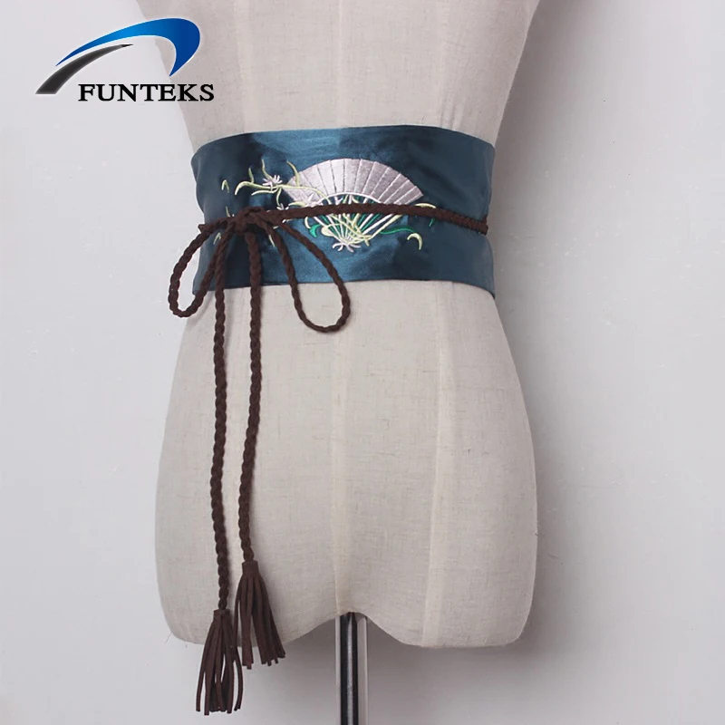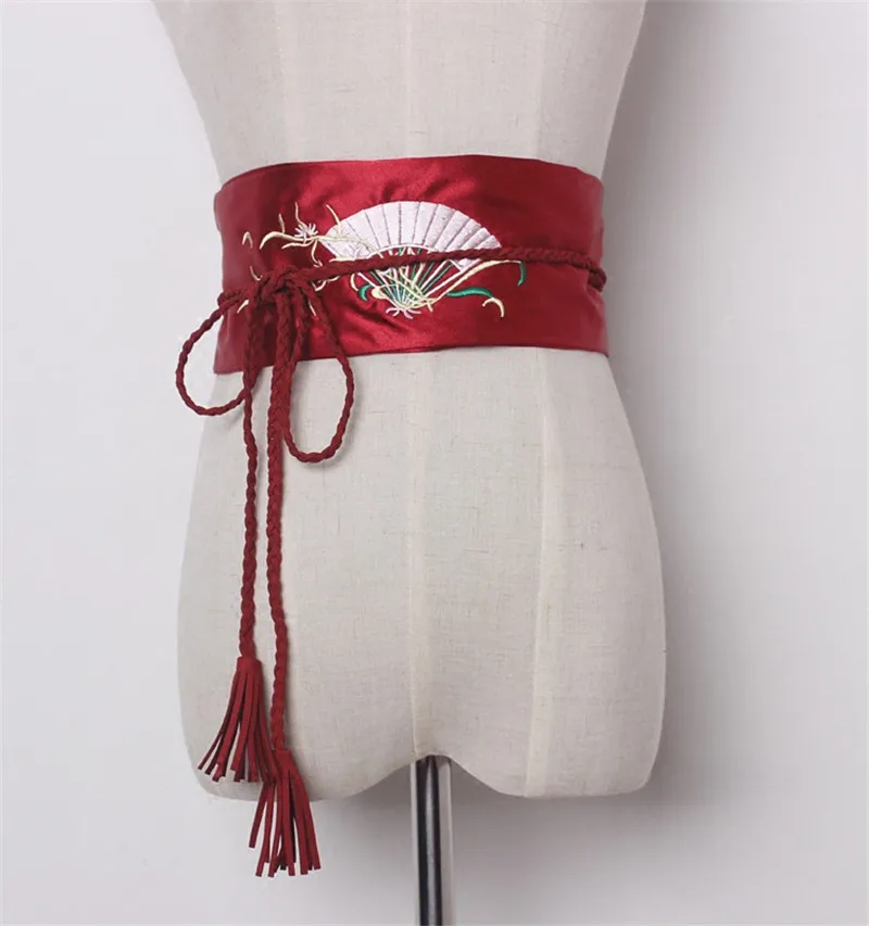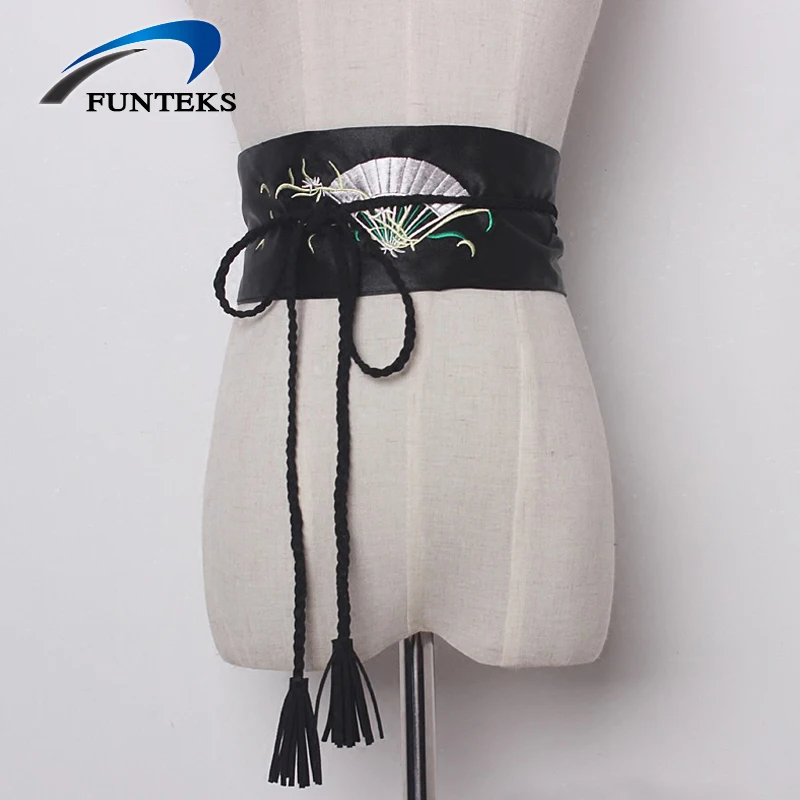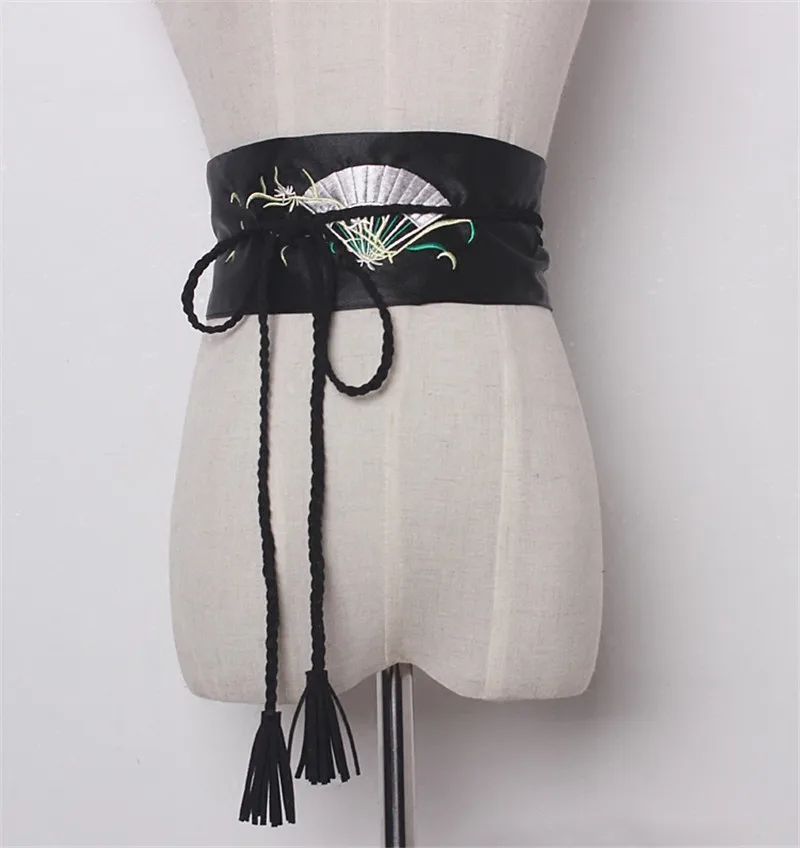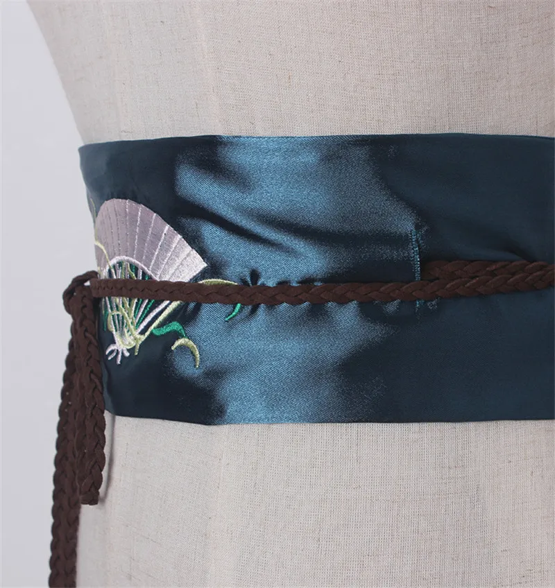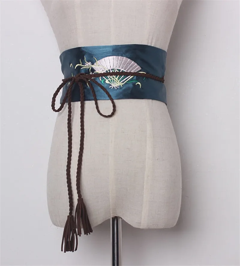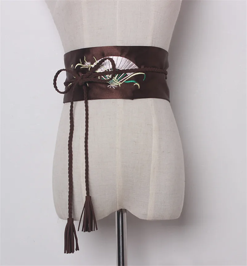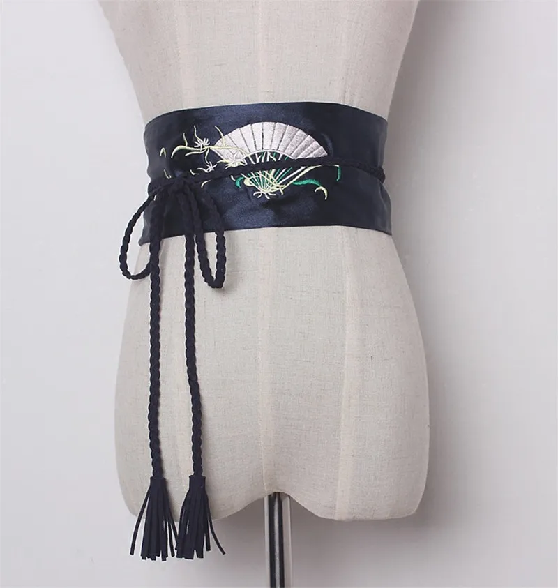 popular elements:Fan embroidery Satin Wide Belts