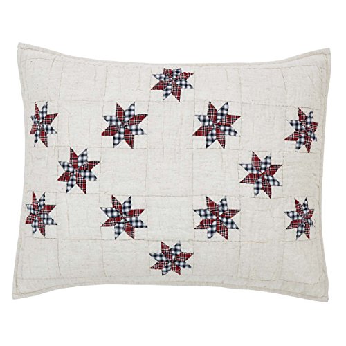 - Eight point star patches consist of denim blue, ruby, and marzipan-based plaids in star chain pattern