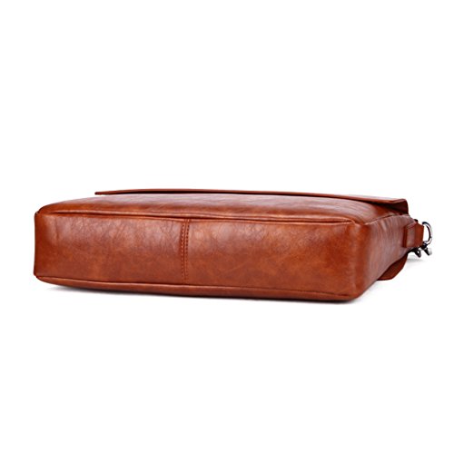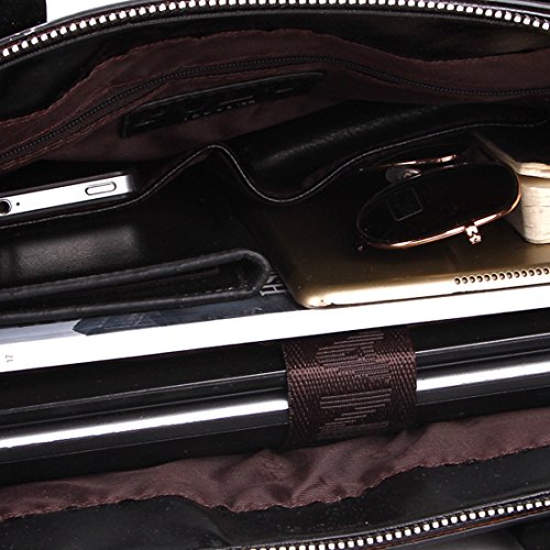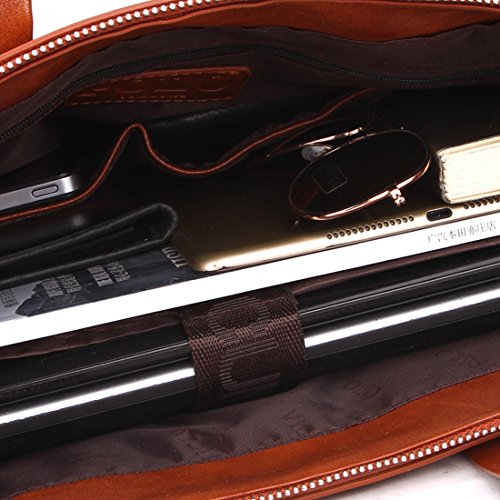 -. Feature : Material:high quality leather Color:Brown/Black / Dimensions: 39*30*8cm(15.35'' * 11.81'' * 3.15'') / Adjustable nice shoulder straps (appr. 88-158cm) / Structure:A total of 8 pockets.1 main pocket.1 comptuer pocket.1 zipper pocket and 2 open pockets outside.1 zipper pocket and 2 multi-function storage area(A4 papers, pens, cards, key, ect.) / Whether it's for work, school, travel or business this satchel will be fit for you .A fashion gift for your husband son and boyfriend