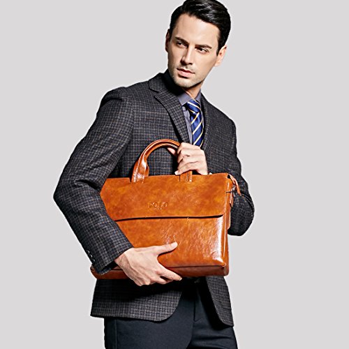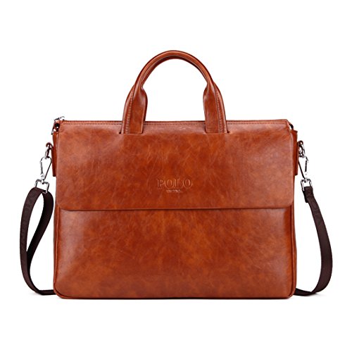 -. Title : VICUNA POLO Man Briefcase Bag Leather Shoulder Bag for 14'' Laptop Bag