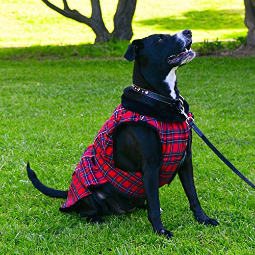 -. Feature : Designed to keep your tiny and large dogs warm and dry all winter long. / Made with a thick Flannel outer layer and another thick Black Fur Lining, making this one of our warmest coats ever. / They come with adjustable straps, covered d-ring access hole, fur lined collar with neck cinch, and reflective night safety straps and trim. / Available in sizes XS thru 5XL (4 to 120 Lbs.). May fit dogs up to 150 Lbs., depending on chest size. / Plaid Colors: Brown & Blue Plaid, Red & Green Plaid, Navy & Turquoise Plaid, Raspberry Pink & Turquoise Plaid and Hunter Green & Navy Plaid.