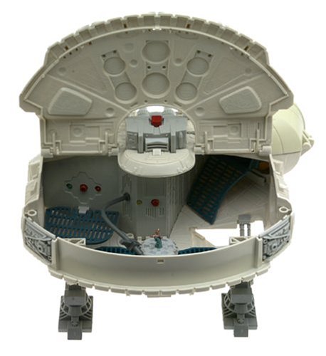 -. Feature : Equipped with real-sounding laser cannons, the ship features a detachable landing module and a roomy interior that houses all your Star Wars figures. / Three figures included: Han Solo, C-3PO, and Chebacca / Requires 3 "AA" batteries (included). / Measures 15"L x 15"W x 9"H.