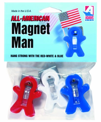 Studio : Adam's Manufacturing Publisher : Adam's Manufacturing Binding : Misc. Product Description Adams Magnet Man is an extra strong magnet with colorful "man" clip. Your Magnet Man clip can hold papers, tablets, notes, artwork, and more! It sticks on file cabinets, blackboards, and other metal surfaces! Heavy-duty plastic construction. These ship in a pack of 3: red, white and blue. A great way to display your child's artwork! 0