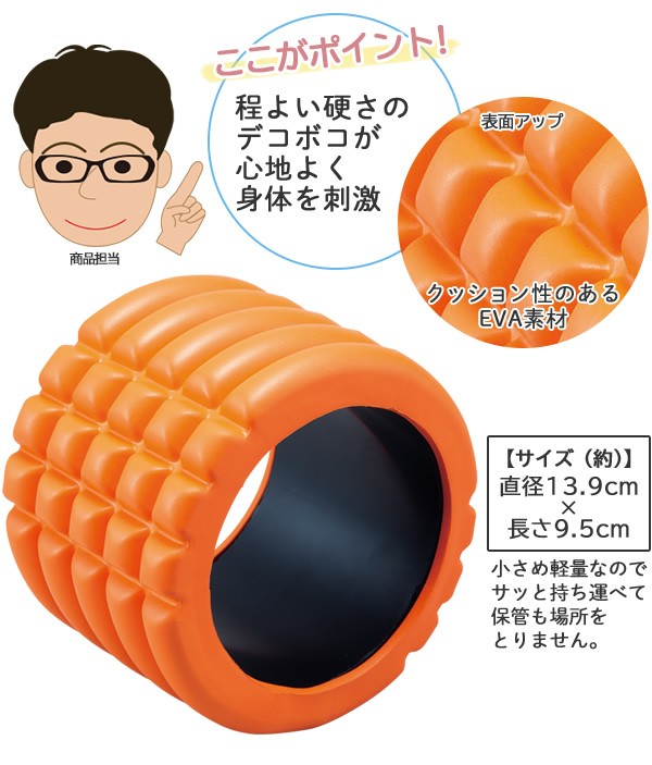 | 凹凸のあるローラーで身体をほぐす!表面はクッション性のあるEVA素材で、程よい硬さのデコボコが心地よく身体を刺激します。小さめ・軽量なのでサッと持ち運べて、保管も場所をとりません。ひざ裏・足の裏・ふくらはぎ・太もも・二の腕など、気になる部分にコロコロ転がし、ピンポイントに刺激してリフレッシュ!/ボディエクサローラー/フォームローラー/ボディローラー/エクササイズ/ショートポール/弾力性/ |