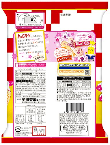 원재료:【해피턴】 미(멥쌀 미(미국산,국산)고, 찹쌀(타이산))고, 식물성 기름지,설탕,나오지 않겠 분,담백 가수분해물(대두를 포함한다)고, 식염,분말 유지,가공 나오지 않겠 분,조미료(아미노산)고, 식물 레시틴(대두 유래) 【해피턴신 매맛】 미(멥쌀 미(미국산,국산)고, 찹쌀(타이산))고, 식물성 기름지,나오지 않겠 분,설탕,매식초 엑기스 파우더,분말 간장(밀 대두를 포함한다)고, 담백 가수분해물(대두를 포함한다)고, 분말초,식염,가다랭이절 분말,분말 유지(유성분을 포함한다)고, 가공 나오지 않겠 분,조미료(아미노산등)고, 신맛료,식물 레시틴(대두 유래)고, 향료