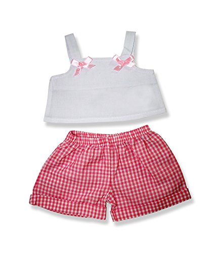 -. Binding : Toy -. Brand : The Bear Mill -. Color : Pink, White -. EAN : 0611265007453 -. Feature : Pink gingham shorts / white tank top with pink bows / fits 15 inch plush / 2 piece outift / high quality craftsmanship and materials -. Label : The Bear Mill -. Manufacturer : The Bear Mill -. Model : 6080 -. MPN : 6080 -. PackageQuantity : 1 -. PartNumber : 6080 -. ProductGroup : Toy -. ProductTypeName : TOYS_AND_GAMES -. Publisher : The Bear Mill -. Studio : The Bear Mill -. Title : Pink Gingham Shorts with White Top - 6080 Fits 15" - 16" bears, includes Build a Bear, The Bear Mill, and Stuff your own Animals. -. UPC : 611265007453