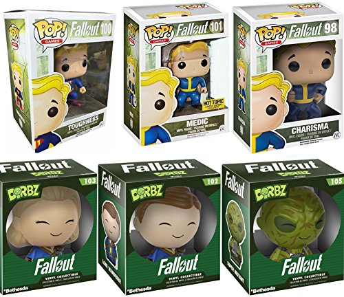 -. Feature : Funko Game Series Fallout Pop & Dorbz 6-Pack Set Exclusive Mystery Character Pack / Funko Pop Fallout Charisma #98 Hot Topic Limited Edition Exclusive / Funko Pop! Games Fallout Vault Boy Medic #101 (Hot Topic Mystery Exclusive) / Funko Pop Games Fallout Toughness Vault Boy Vinyl Figure / Fallout Dorbz Lone Wanderer Action Figure #102 & 103 + Super Mutant #105
