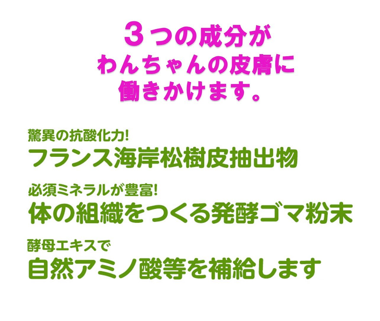 It is a dietary supplement for supplements / animals that works to make the skin of the dog gentle.
