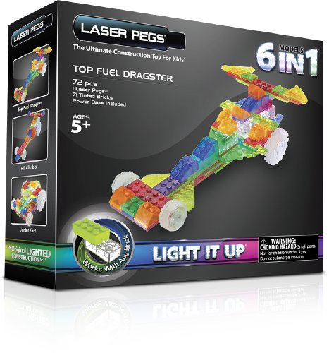 -. Title : Laser Pegs 6-in-1 Dragster Building Set