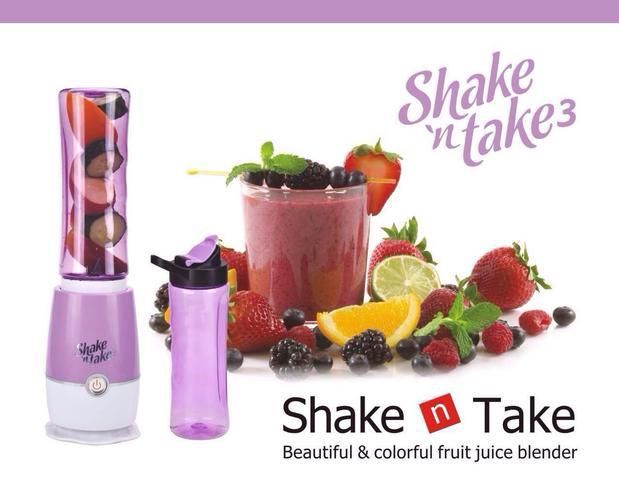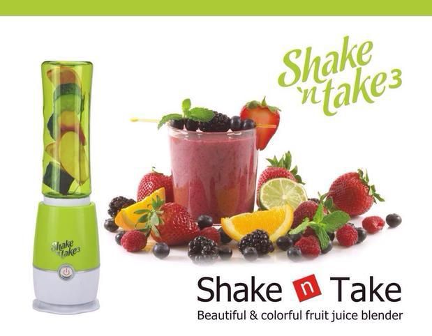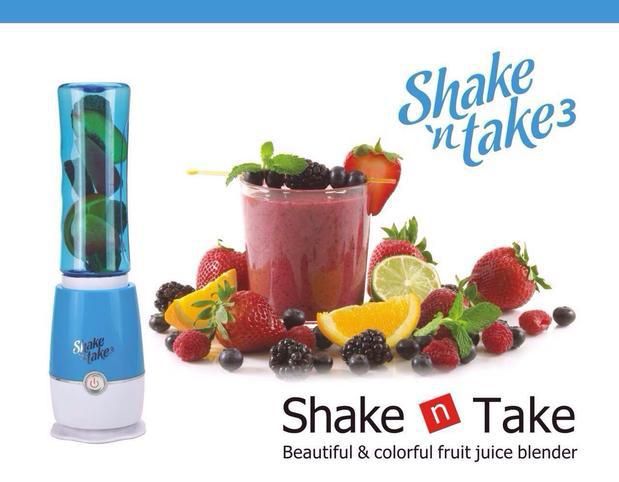 Shake N Take Sports Bottle Blender Instantly blend smoothies and protein shakes and go! Blend and drink from the same bottle. Crushes ice instantly. Just blend and go! Convenient flip top straw, super powerful blender crushes ice instantly, fits in car cup holders and easy to clean. A quick breakfast solution for families on the go! Add fruit to create a healthy fun snack! Blend a different drink for each of your friends! The perfect size for a light meal or treat at work. Add a scoop of your favorite protein and head for the gym. At home or on the road, just blend and go!