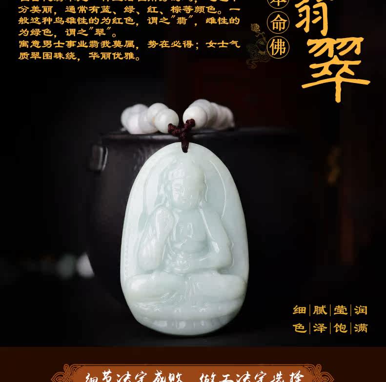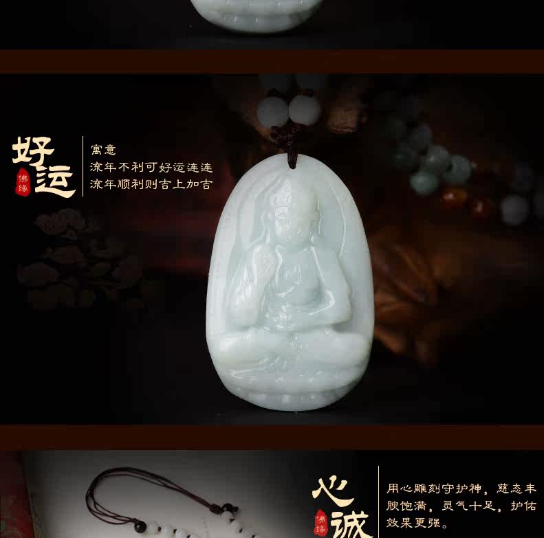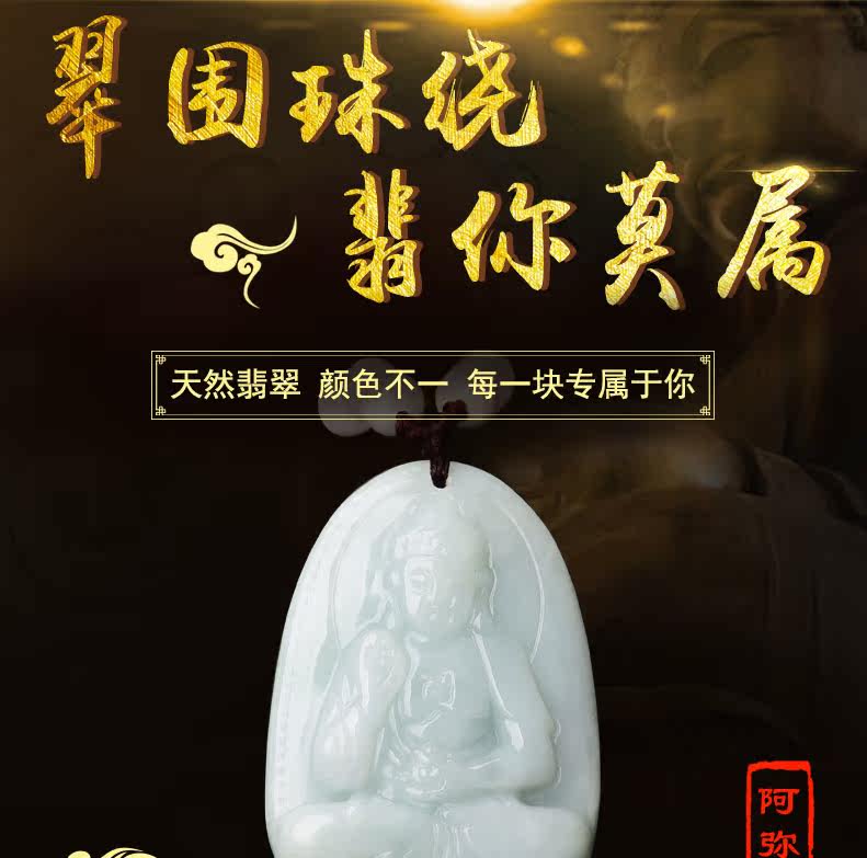 开光 翡翠阿弥陀佛菩萨吊坠 生肖属狗猪本命佛男女士项链玉石挂件