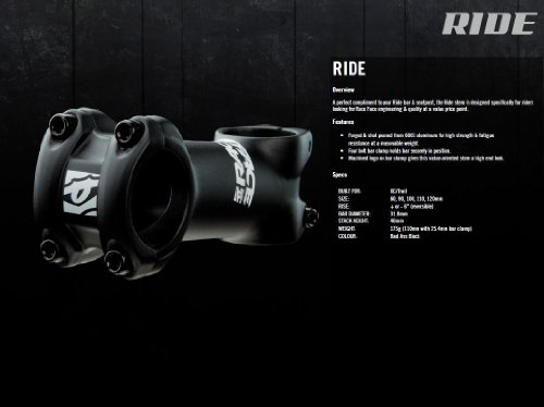 ReleaseDate : 2012-05-24 Studio : Race Face Publisher : Race Face Binding : Sports Product Description A perfect compliment to your Ride bar and seatpost, the Ride stem is designed specifically for riders looking for Race Face engineering and quality at a value price point. 0