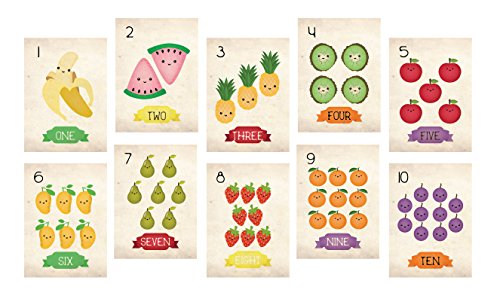Nursery Decor, Fruits Counting Cards, Number Flash Cards 1 - 10, Kid's Decor, Eco-Friendly Print, Wall Letters And Numbers