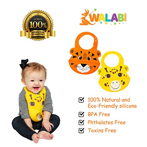 -. Binding : Baby Product -. Brand : Walabi -. Feature : Incredibly Cute & Colorful: Other silicone bibs can't compare. These soft unisex drool bibs boast adorable animal P.R.Ints, uniquely designed & detailed right down to the cute little ears. / Easier to Clean: Tired of dealing with dirty bibs? Your Walabi waterproof bibs actually repel messy grime. Plus, cleanup is a breeze. Simply wipe off with soapy water or pop right in the dishwasher. / Premium Food-Grade Silicone: Tested to meet US safety standards, these infant & toddler bibs are totally safe & nontoxic. No BPA. No lead. No phthalates. No toxic PVC. Low flammability, too. / Packed with Practical Features: From their food-catching pockets to their safe, secure buttons, your Walabi dribble bibs are designed to make your life easier. They'll even fold for compact storage. / 100% Guaranteed: If you're not totally thrilled with your baby bibs set, return it anytime for a full refund or free replacement... whatever it takes to ensure your complete satisfaction. -. Label : Walabi -. Manufacturer : Walabi -. ProductGroup : Baby Product -. ProductTypeName : BABY_PRODUCT -. Publisher : Walabi -. Studio : Walabi -. Title : Animal Friends Silicone Baby Bib, Set of 2 :: Waterproof Silicone Bib with Pocket to Catch Food & Drool :: Easy Care, Washable, Dishwasher Safe