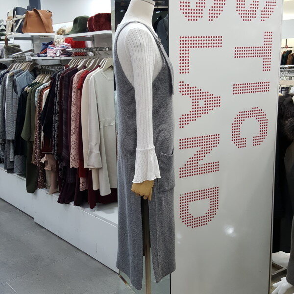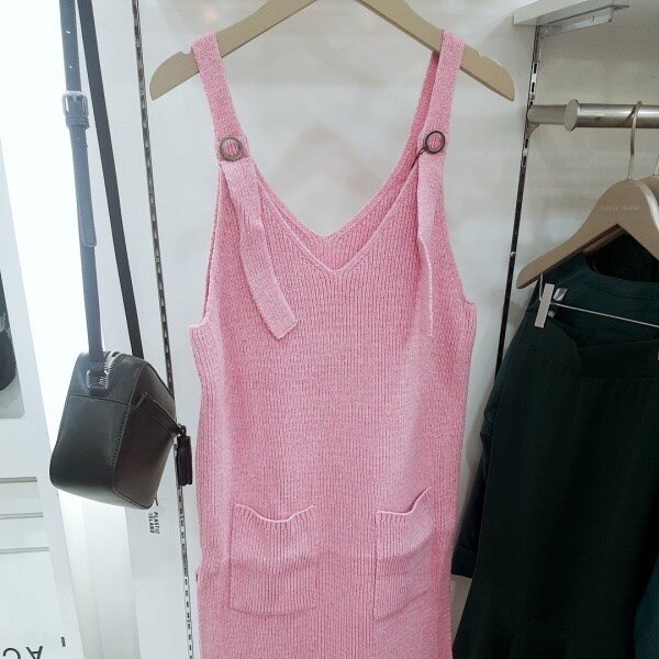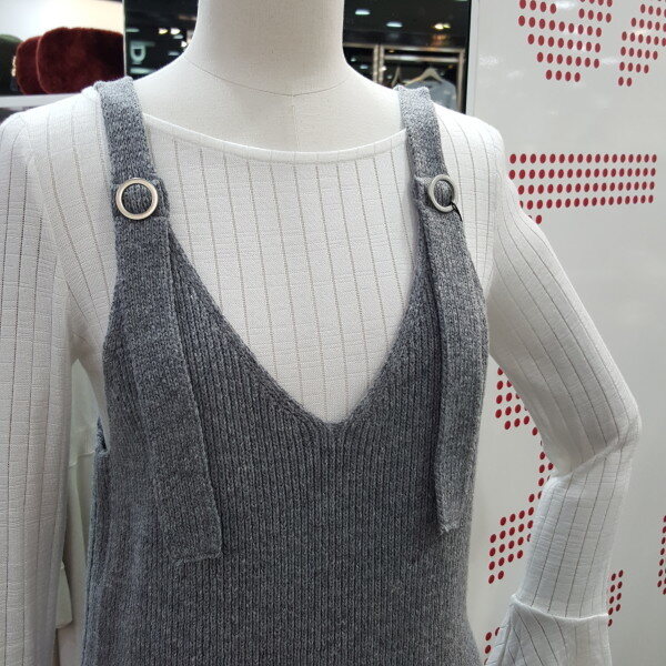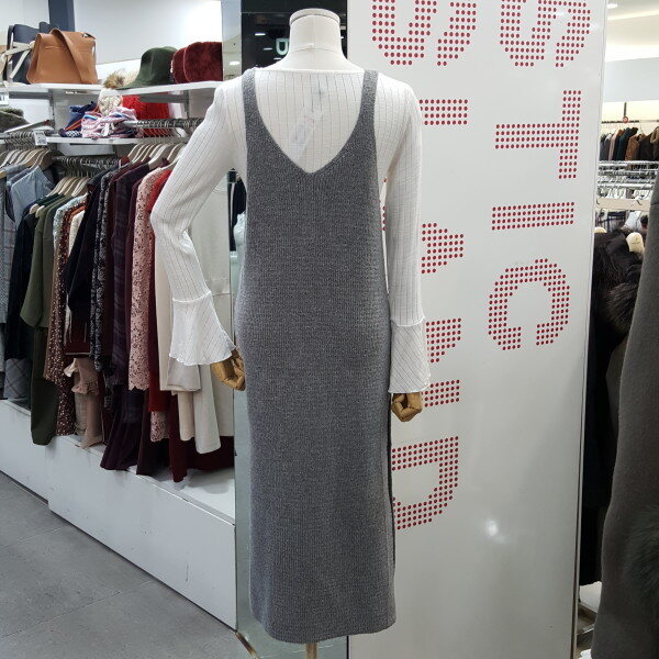 모혼방의 니트 뷔스티에 원피스입니다.옆트임이 길게 있는 스타일로 레이어드 하시기 좋은 스타일입니다. 총장 110cm