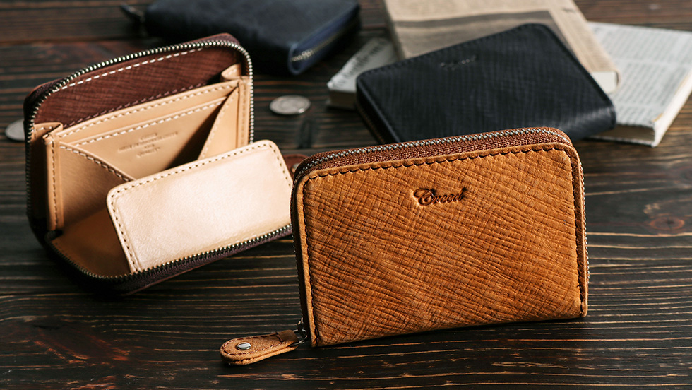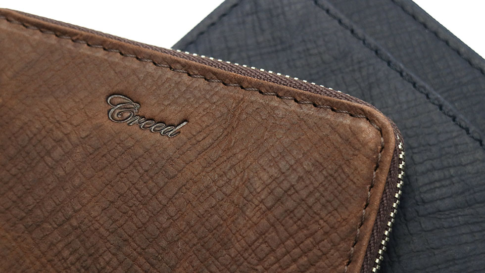 We finish domestic raw skin with dyestuffs and wax, giving it a soft texture and a crisp texture. Every one piece is stamped and smoothed, and finished to a unique texture such as rubbed like Atari. From selection of materials to design Creed richness is condensed, you can use regardless of gender.