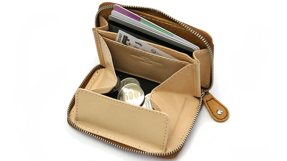 Coin storage is a box type and excellent in visibility, so it is easy to take out as it opens widely. The inner pocket can hold cards, tickets, folded banknotes and so on. Pocket is also attached to the back side of the main body, making it convenient for storage of IC cards and so on.